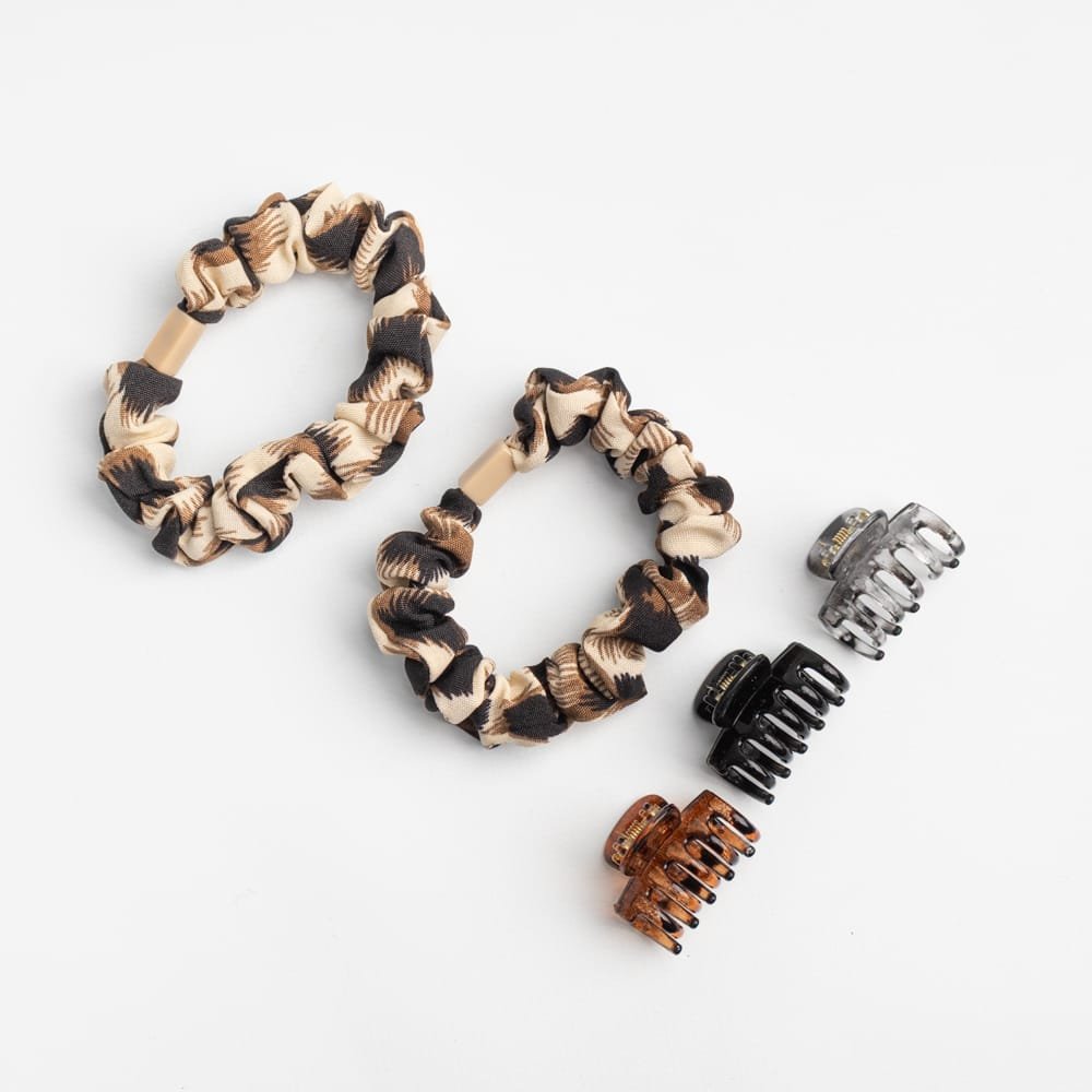 Inicio/ACCESORIOS/ACCESORIOS DE CABELLO/ACCESORIOS DE PELO/KIT DE COLITA Y HEBILLA ANIMAL PRINT